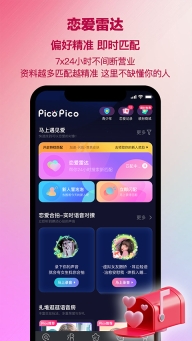 对于喜欢交友的朋友来说,PicoPico也是一款十分不错的社交软件,在首页拥有三种不同的匹配功能,还可以根据你设置条件进行查找匹配对象,让你找到那个灵魂契合的他,相信很多小伙伴已经心动了,需要的用户可以来本站下载使用。