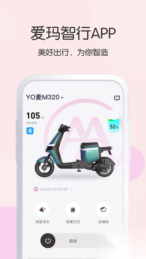 爱玛出行 APP 担当着爱玛电动车智能出行管家的角色。
