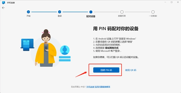 8、Windows将创建一个二维码,以便使用“连接手机”配套应用程序在您的电脑上进行扫描。