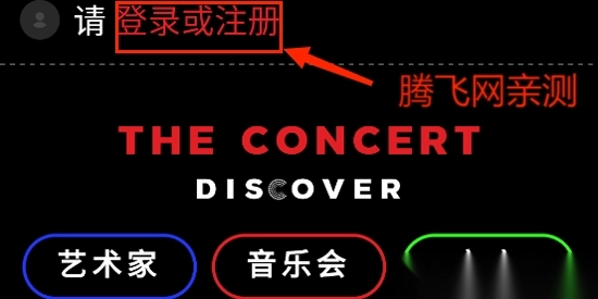 1. 下载并启动The Concert,于主页位置点击“请登录或注册”。