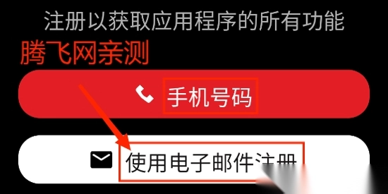 3.在注册界面选择手机号或者电子邮件注册,输入验证码。