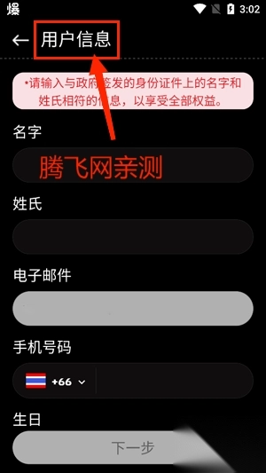 4.完善用户信息,点击下一步,完成注册。