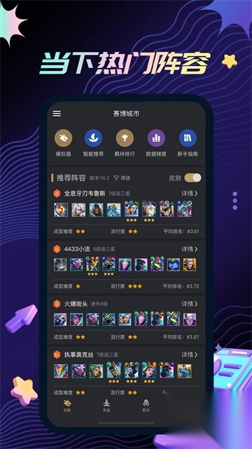 -收录当前最热门、高胜率阵容;