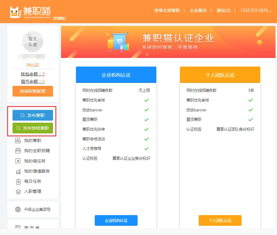 兼职猫企业版发布广告怎么操作