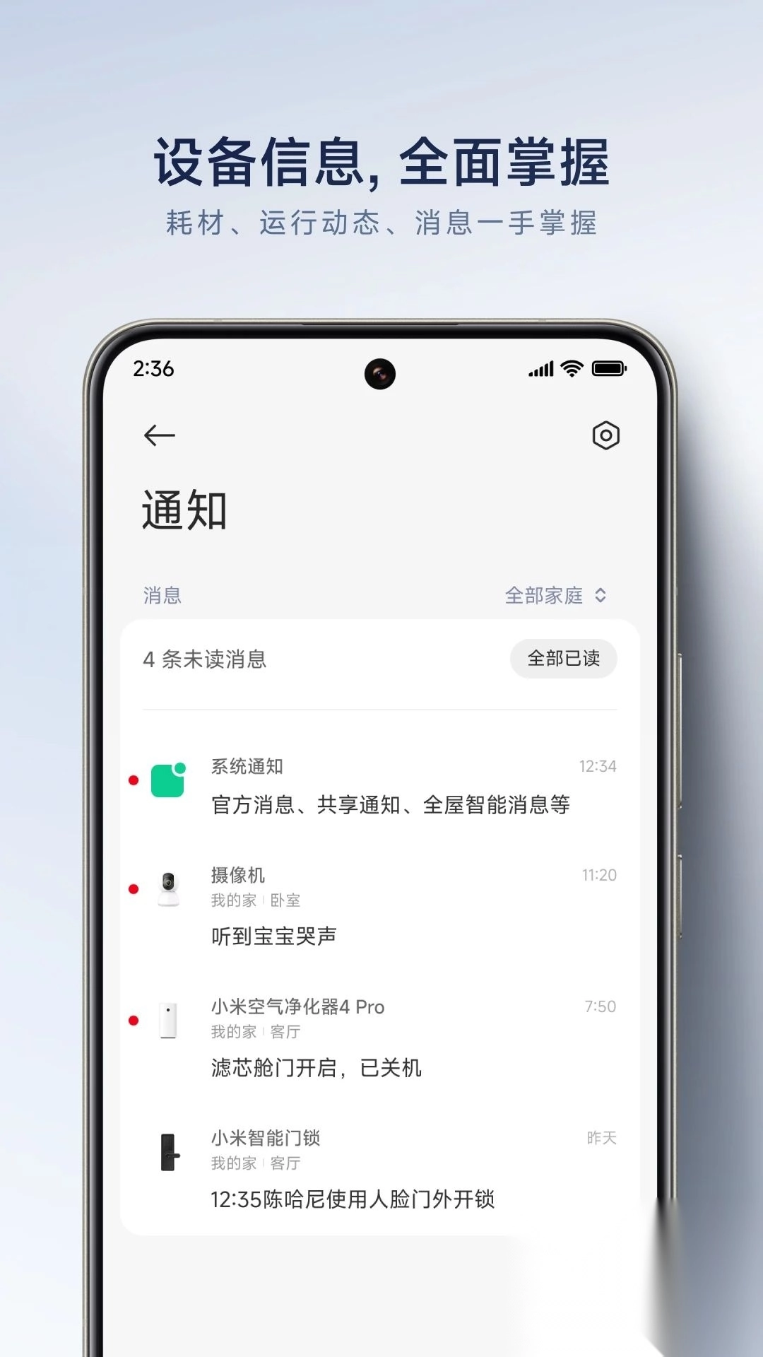 1. 全屋智能掌控:仅需一个App,就能对全屋智能设备进行管理。