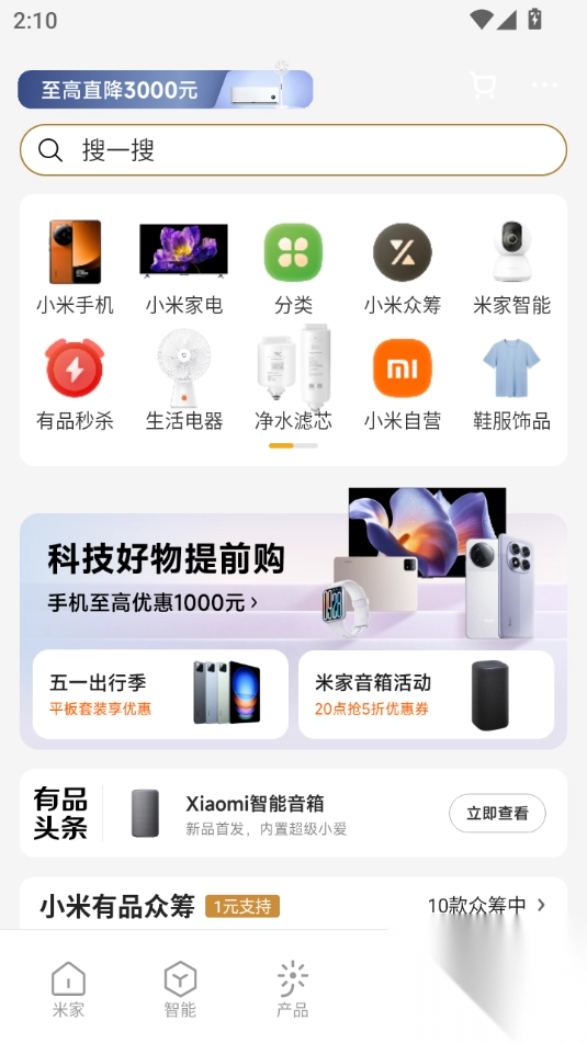 6. 商城购物:小米有品商城,为购买智能设备提供便捷途径。
