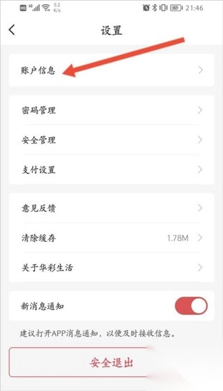 1、进入手机的华夏银行华彩生活app,点击我的选项。