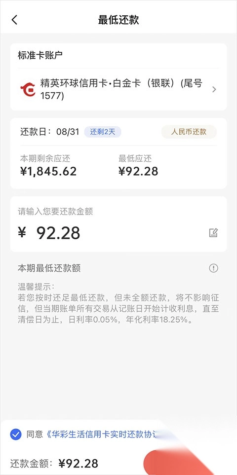 3、进入最低还款页面(系统自动显示最低还款额),点击确认还款即可还款。