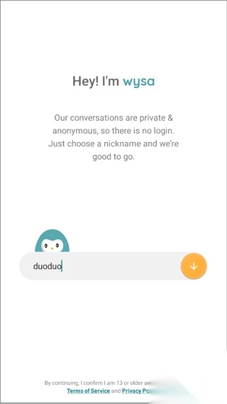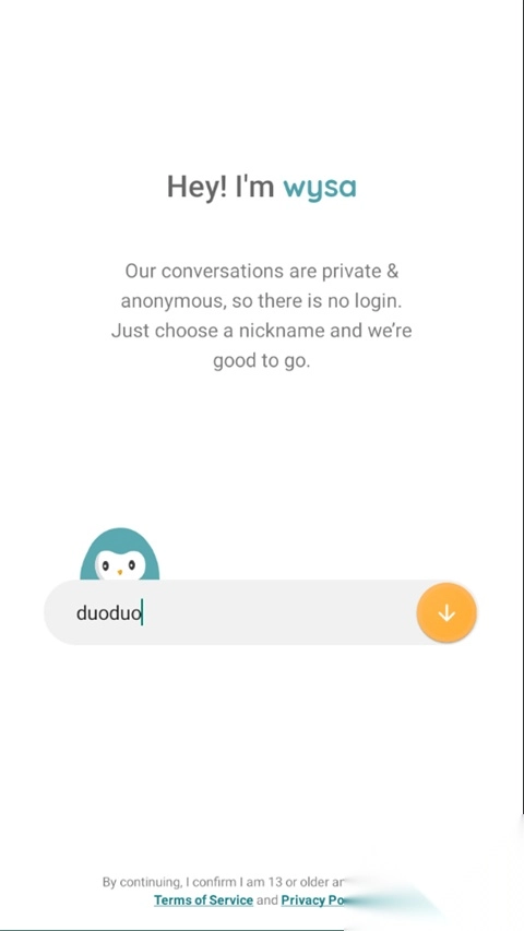 1. 登录Wysa,为自己挑选一个昵称。