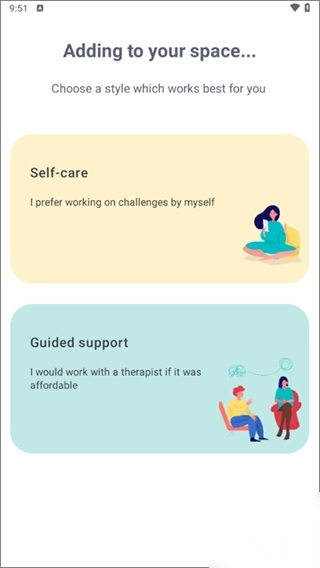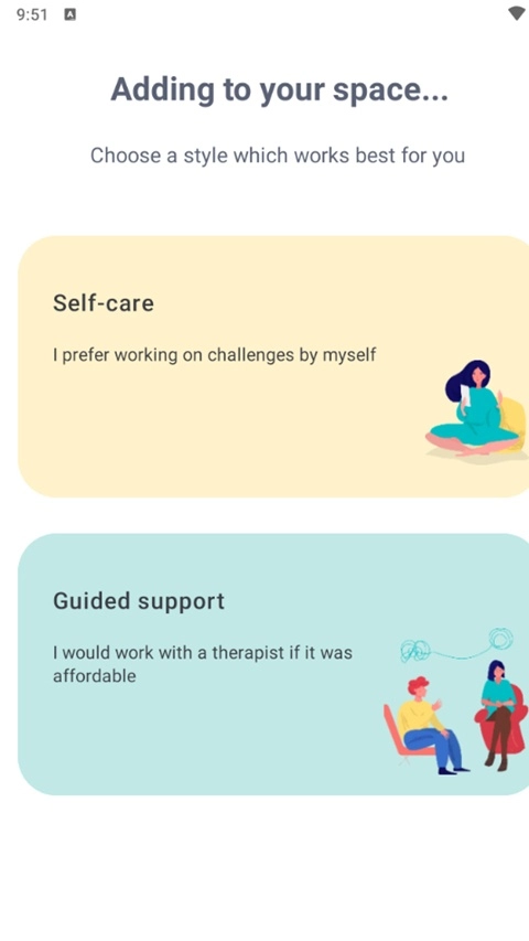 - 滚动⬆浏览推荐内容,探索 Wysa 认为您可能感兴趣的内容。