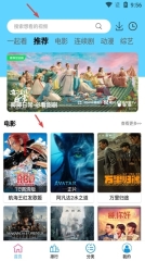1.首先我们需要在首页的输入框输入自己想要追剧的影片名字,或者直接在下方的影片推荐中选择自己喜欢的电视剧