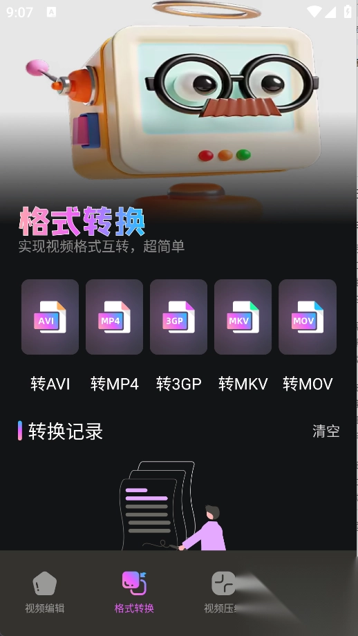 2、在格式转换页面中支持转AVI、转MP4、转3GP、转MKV以及转MOV格式;