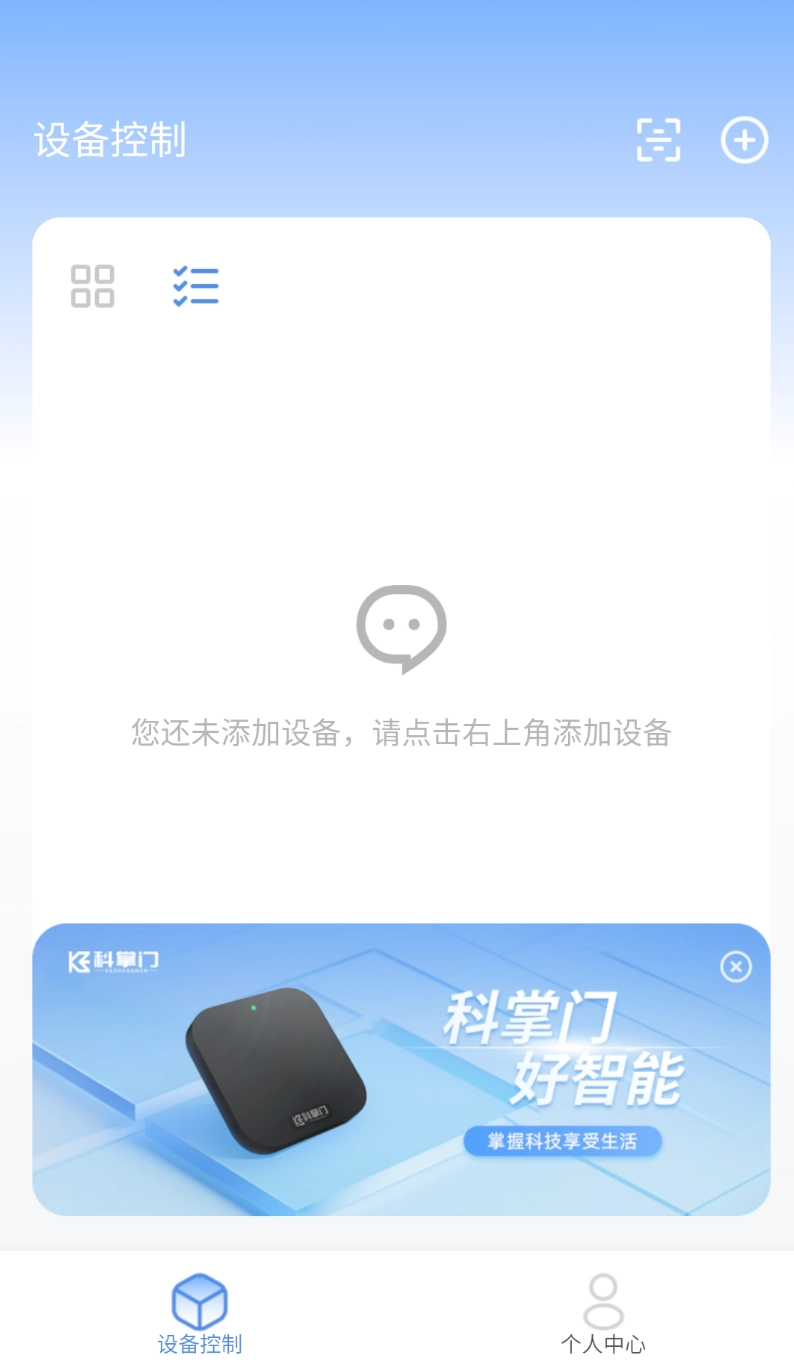 2、登录后进入软件首页,点击右上角的 “+” 图标进入添加设备界面。