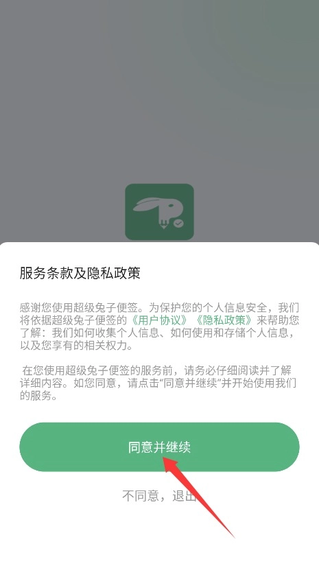 1、初次使用需完整阅读平台服务条款与隐私政策,确认后点击同意并继续进入应用。