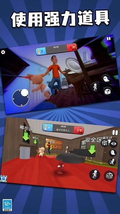 2、多角色自由切换的机制,突破了传统躲藏游戏的限制,让每个家庭成员都具备独特的移动特性和互动方式。