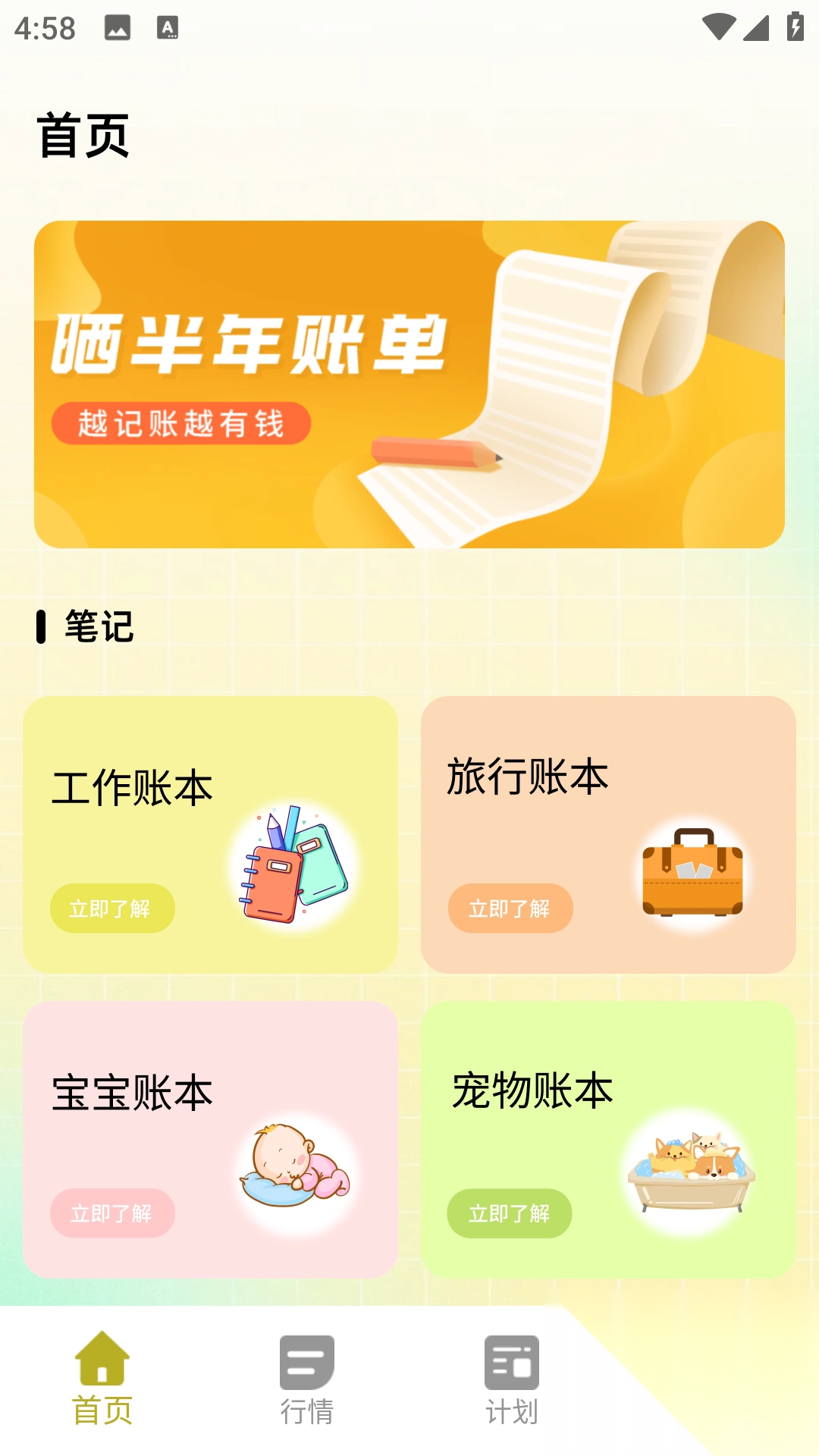 2、首页中包含了工作账本、宝宝账本等各个分类;