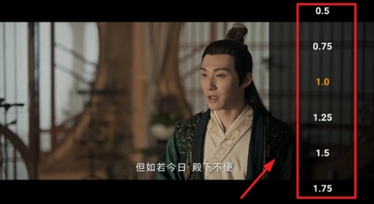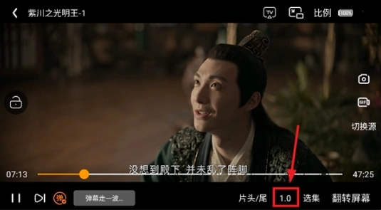 2、当进入视频全屏播放模式后,点击如图所示的1.0 。