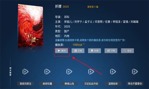 3.找到目标影视进入相切页面,点击播放按钮