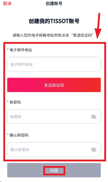 在创建账号界面,输入邮箱,获取验证码后,输入验证码,密码,点击创建即可