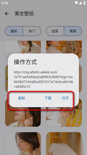 5. 选定壁纸后,既能够直接进行复制下载操作,也可以打开壁纸。