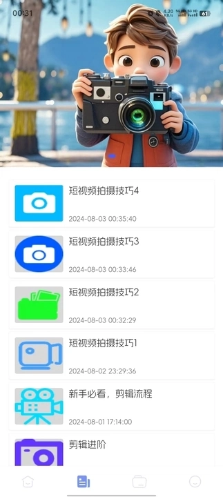 2、在资讯页面中有很多短视频的拍摄技巧,用户可以随时学习各类技巧;
