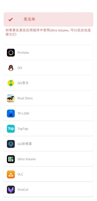 如果想要在某些应用程序中禁用Ultra Volume,可以在此处选择他们。