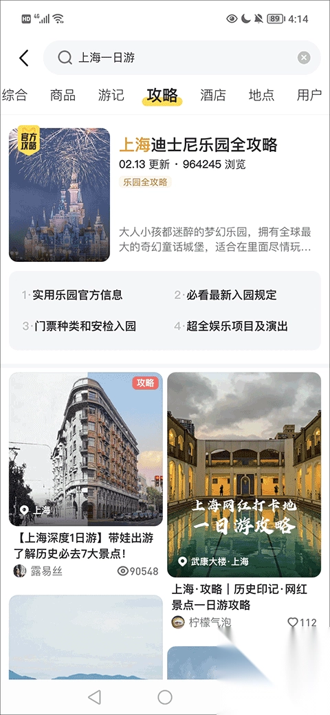 4、而且每个攻略、游记、地点等都显示观看的数量、收藏的数量、有多少人在这里旅游等,以量化的数据方式显示更公开透明,让人有安全感。