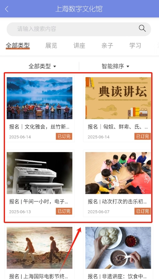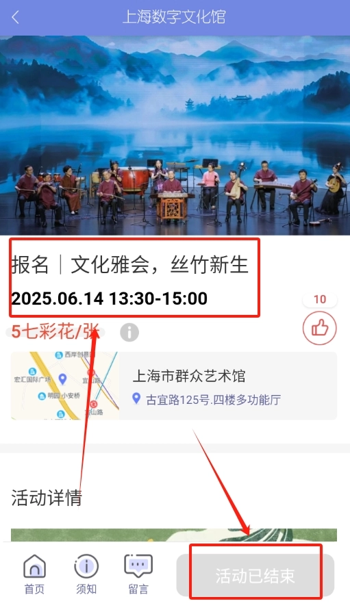2、在活动板块仔细查看感兴趣的文化活动,点击预约按钮,轻松完成活动预约全部流程。