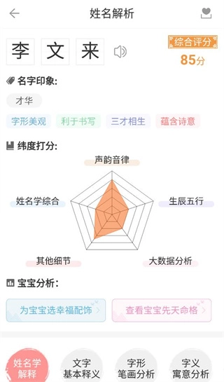6、可在线推算出宝宝未来在婚姻、财运、事业等方面的信息。