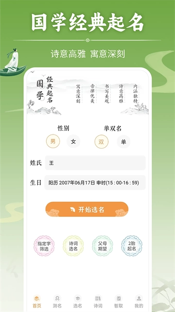【诗词起名】依据特定诗人、诗名以及诗词类型,一键就能生成名字。