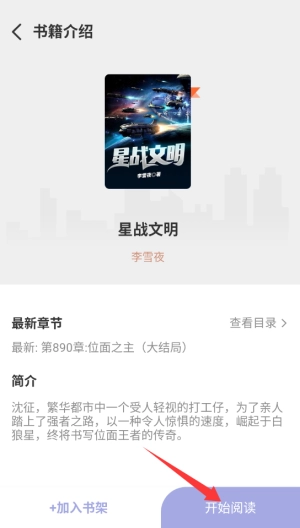 3、在书籍详情页面直接点击"开始阅读"按钮,即可进入正文浏览完整章节内容。