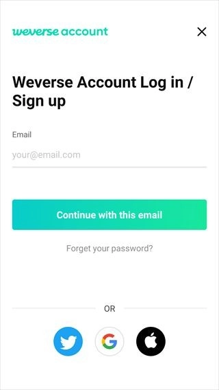 1、在本站下载并安装weverse注册/登录账号即可体验完整服务,还没有账号的小伙伴也不必担心,小编在下文将为各位介绍具体的注册方法