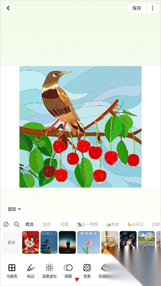 想要换背景时,打开它首页点击“美化图片”,然后选择一张图片