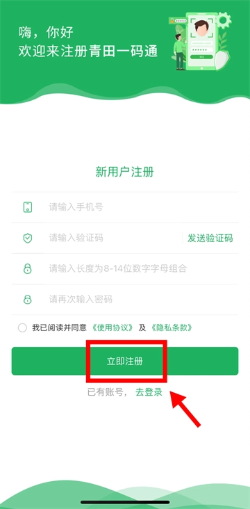 青田一码通app注册及绑卡流程: