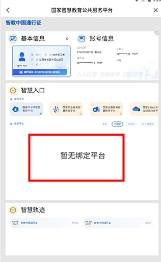 6. 注册完成后,回到我页面,点击智教中国通行证进行平台绑定。