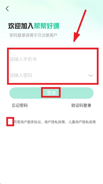 请输入手机号码和密码,同时勾选同意用户服务协议、用户隐私政策以及儿童用户隐私政策,最后点击登录按钮就能完成操作。