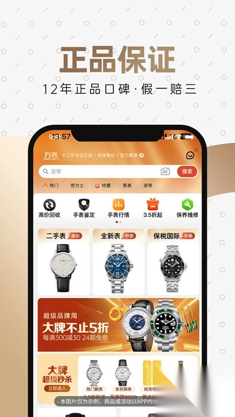 如今网络上卖手表的店铺众多,但稍不留意就极易买到假货。在此,给大家推荐万表网app,它也被称作万表名表珠宝,是万表网官网专为安卓手机用户打造的一款手机在线购表软件。该软件提供16个中国独家代理的欧洲名表品牌,还有正品保障、7天无理由退货等服务,相当靠谱。有买表需求的朋友不妨下载体验一番。