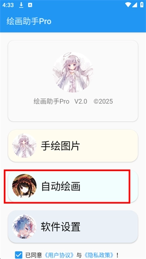 1、打开软件,点击自动绘画。