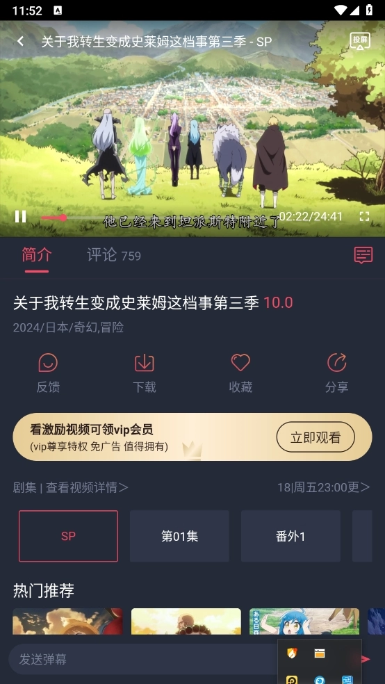 3、以便没有网络的情况下更稳定流畅地观看动漫。允许将喜欢的动漫下载并保存到本地。