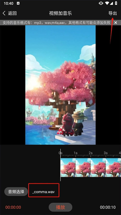 4、添加的音乐将会在左下角显示,完成操作后点击“导出”即可。