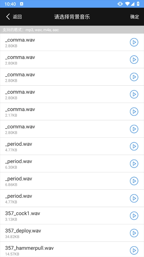 3、选择你要添加的背景音乐(支持的音乐格式有:mp3,wav,m4a,aac,其他格式有可能会添加失败)