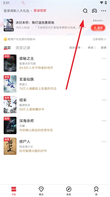 2、打开软件后,在界面右上角点击搜索,查找自己喜爱的小说。