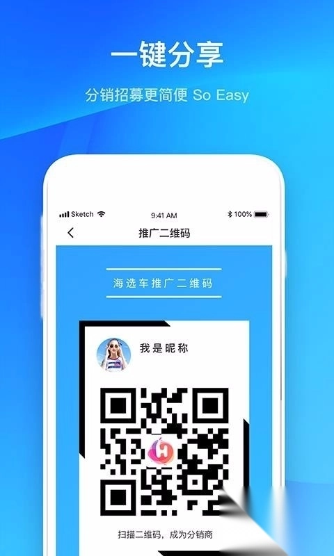 海选车安卓版APP具备线上分销推广、佣金管理以及销售工单跟进等功能。