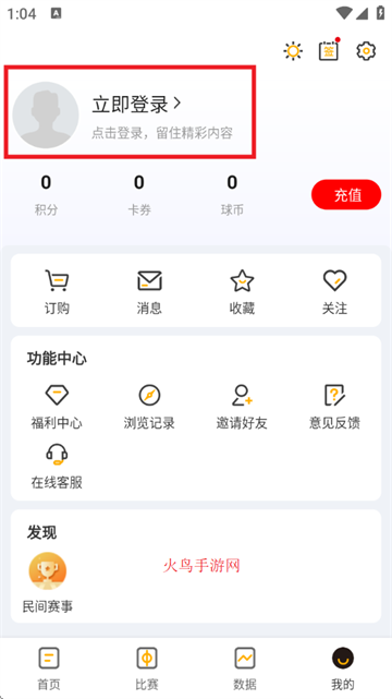 1、首先启动球天下体育应用程序,然后点击屏幕右下角的“我的”选项;