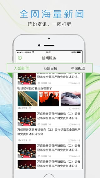 组建专业化团队,整合华龙网、UC、澎湃、新浪、搜狐、凤凰等华人资讯,为您量身打造最精致的新闻节目,世界奇闻、社会、人文、体育、娱乐、财经、果壳科技和教育更多精彩内容等你发现。公交汽车、地铁轻轨、代驾租车上,拿起手机看新闻,不再无所事事;运动健身、旅行旅游、高速通时,轻松成为万盛百事通。