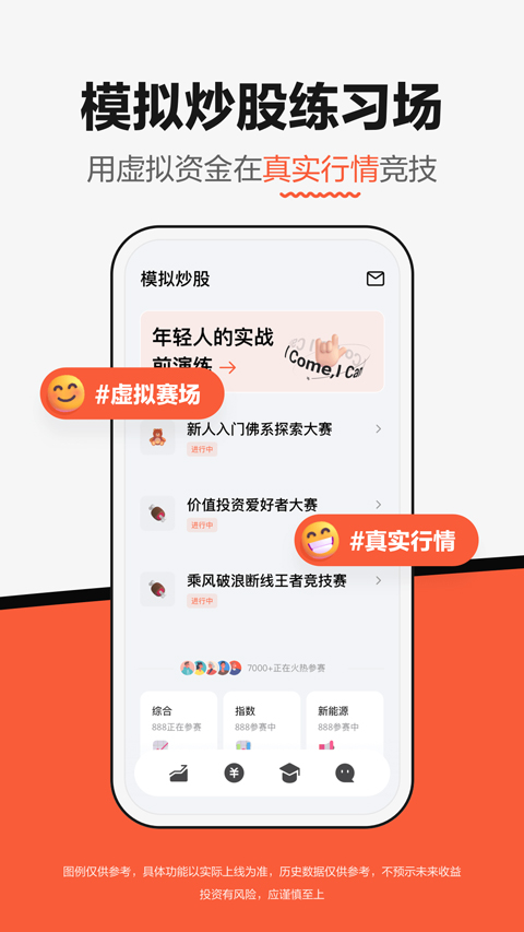 【模拟炒股】使用虚拟资金,在真实的市场行情中进行竞赛。