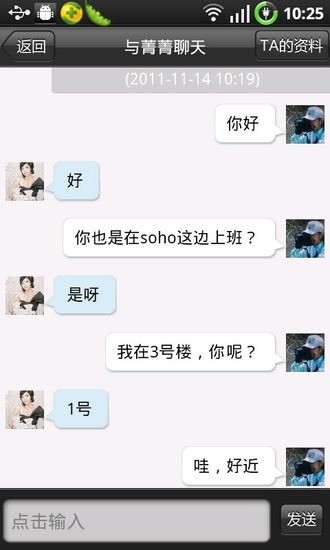 2、不仅可以在线聊天,距离较近的用户还可以选择线下见面,为你们提供了多种娱乐方式。