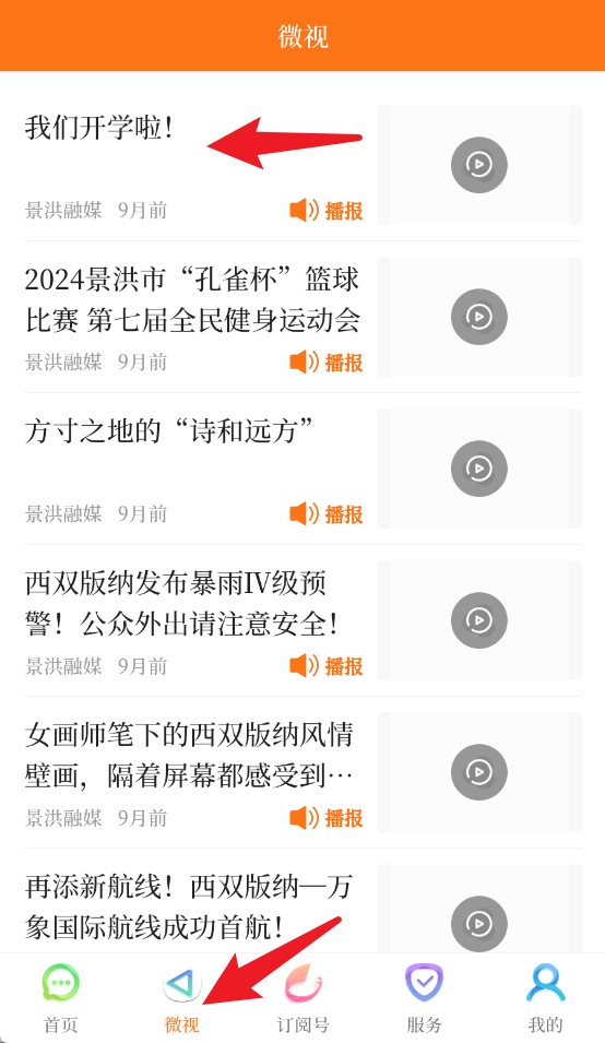 2. 点击“微视”进入本地微视频页面,浏览新闻播报和短视频内容。