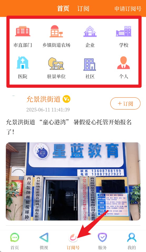 3.在“订阅号”里可以根据单位类型选择订阅个性化内容,比如学校、医院等。