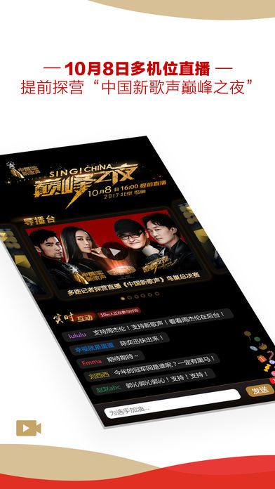 《中国好声音》、《奔跑吧兄弟》、《浙江新闻联播》、《1818黄金眼》等浙江广电集团的优质节目进行直播,观众可以一边观看直播一边与网友聊天,共同享受这场直播盛宴。